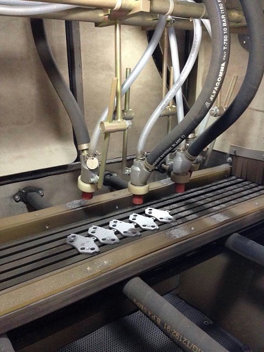 剎車片簡介 剎車片也叫剎車皮。在汽車的剎車系統(tǒng)中,剎車片是最關(guān)鍵的安全零件,所有剎車效果的好壞都是剎車片起決定性作用,所以說好的剎車片是人和汽車的保護(hù)神,剎車片一般由鋼板、粘接隔熱層和摩擦塊構(gòu)成,鋼板要經(jīng)過涂裝來防銹,那么剎車片生產(chǎn)過程中粘結(jié)過程中,噴砂、拋丸是一道非常重要的工藝,經(jīng)過噴砂、拋丸的剎車片、可以使粘結(jié)更加牢固、更加穩(wěn)定。 吉川科技針對(duì)剎車生產(chǎn)的工藝要求,研發(fā)設(shè)計(jì)出一款剎車片專用噴砂機(jī),噴砂效率高,噴砂質(zhì)量穩(wěn)定,環(huán)保無污染等